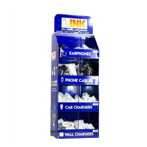 Car charger | Input: DC 12-24V | 2USB Output: 5V-2.1A | 20pcs IOS data cable | Length:1 meter | 2 Colours (Black | White) mix | 20 Pieces Type-C Data Cable | Length:1 Meter | 3 Colours (Black | Blue | Grey) mix | 20 Pieces Single USB Wall charger Output: DC 5V-2.1A | 20 Pieces 1.2m Earphones 2 Colours (Black | White) mix | 20 Pieces Sold by Display!